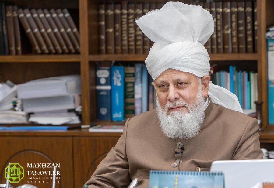 Seine Heiligkeit, das spirituelle Oberhaupt und der 5. Kalif der Ahmadiyya Muslim Gemeinde, Hadhrat Mirza Masoor Ahmad (ABA). Quelle: Makhzan-e-Tasaweer.